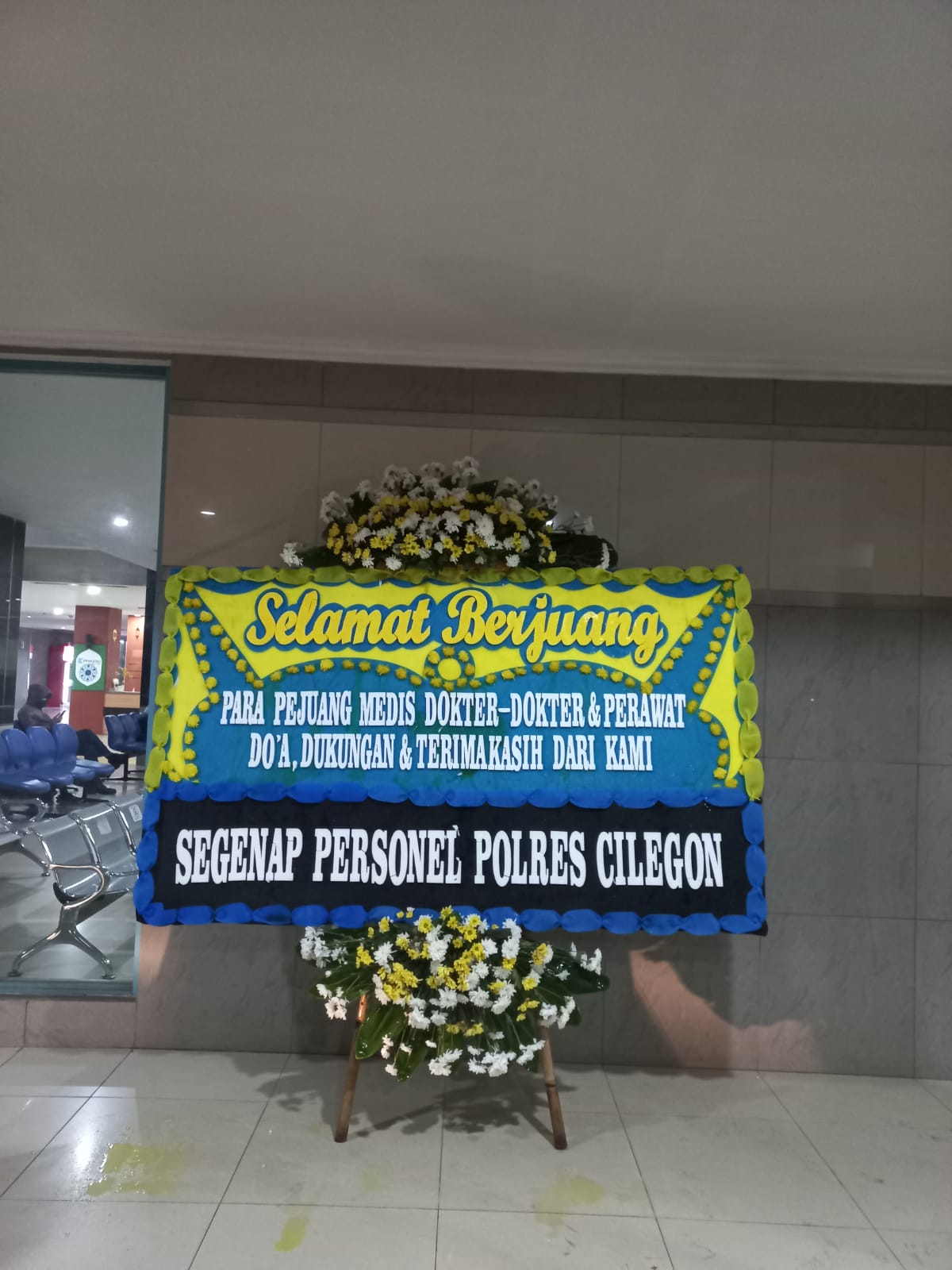 oleh awak media mengatakan Pemberian karangan bunga ini sebagai bentuk apresiasi dari kami, seluruh anggota di Polres Cilegon untuk kawan-kawan nakes atas dedikasi dan kerja kerasnya, semoga menjadi tambahan semangat dan motivasi bagi kawan-kawan nakes.