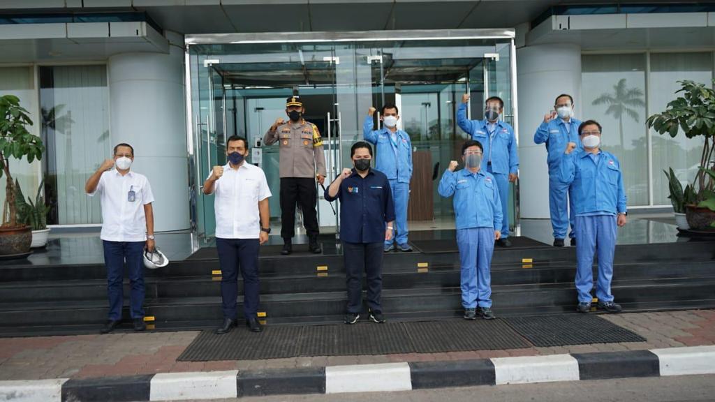 Berita Polres Cilegon–Kapolres Cilegon Polda Banten AKBP SIGIT HARYONO,S.IK, SH. dampingi Menteri BUMN RI ERICK THOHIR, B.A, M.BA dalam rangka Pengecekan ketersediaaan Oxsigen di PGI Cilegon Selasa 13/07/2021