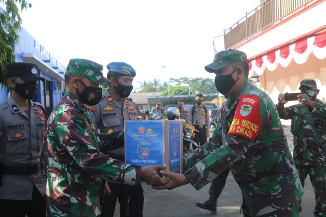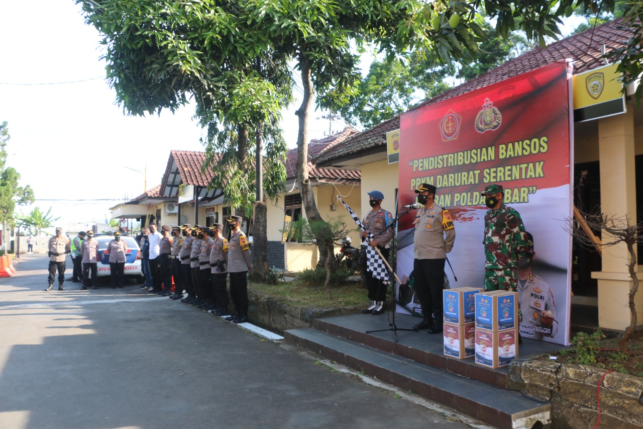 Pendistribusian bantuan sosial dipimpin Kapolres Kuningan AKBP Doffie Fahlevi Sanjaya, S.I.K., M.Si di depan halaman Mako Polres Kuningan bersama Dandim 0615 Kab Kuningan Letkol Czi David Nainggolan, S.T., didampingi Wakapolres Kompol Jaka Mulyana, S.I.K., M.I.K, para Kabag, para Kasat dan Kasi jajaran Polres Kuningan.
