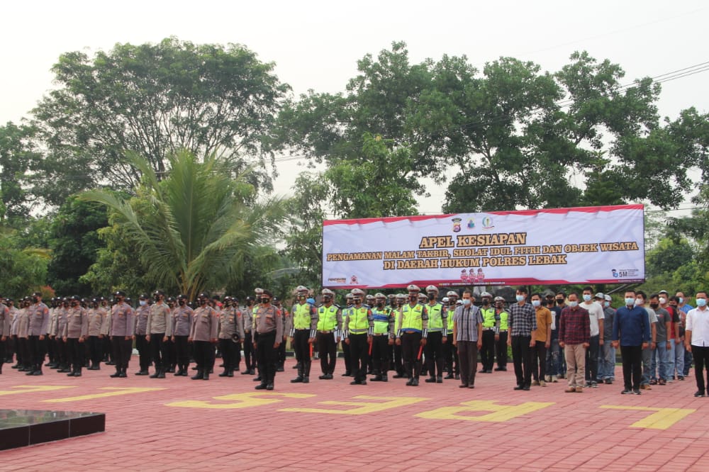 “Hari ini kita melaksanakan apel persiapan pengamanan malam takbiran dan Sholat Idul Fitri.Apel ini merupakan tindak lanjut dari operasi Ketupat Maung 2021 di Jajaran Polres Lebak guna memastikan kembali kesiapan personil dan sarana prasarana dalam rangka menghadapi malam takbir dan sholat idul Fitri” ujar Kapolres Lebak AKBP Ade Mulyana,SIK