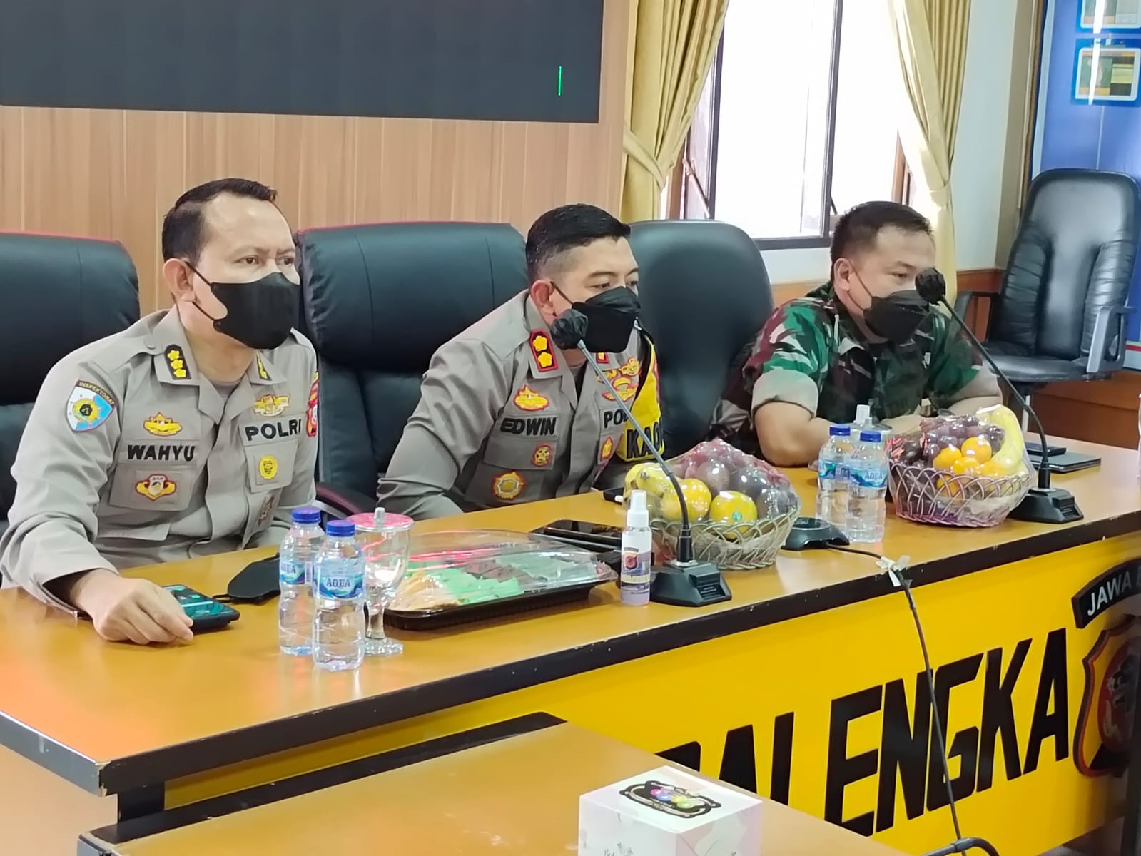 Secara Virtual Kapolres Majalengka AKBP Edwin Affandi bersama Forkopimda Kabupaten Majalengka menghadiri Rapat Koordinasi (Rakor) lintas sektoral untuk membahas soal antisipasi potensi lonjakan Covid-19 saat perayaan Natal 2021 dan Tahun Baru 2022 (Nataru) bertempat di Aula Sindangkasih Polres Majalengka.