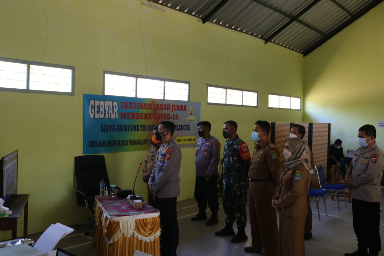 Berita Polres Majalengka–, Kepala Kepolisian Polres Majalengka AKBP Edwin Affandi hadiri zoom meeting bersama Kapolri tentang Vaksinisasi massal diwilayah hukum Polres Jajaran, Polda Jabar bertempat di SMK Tridaya Budi Kasokandel, Senin (13/9/2021)