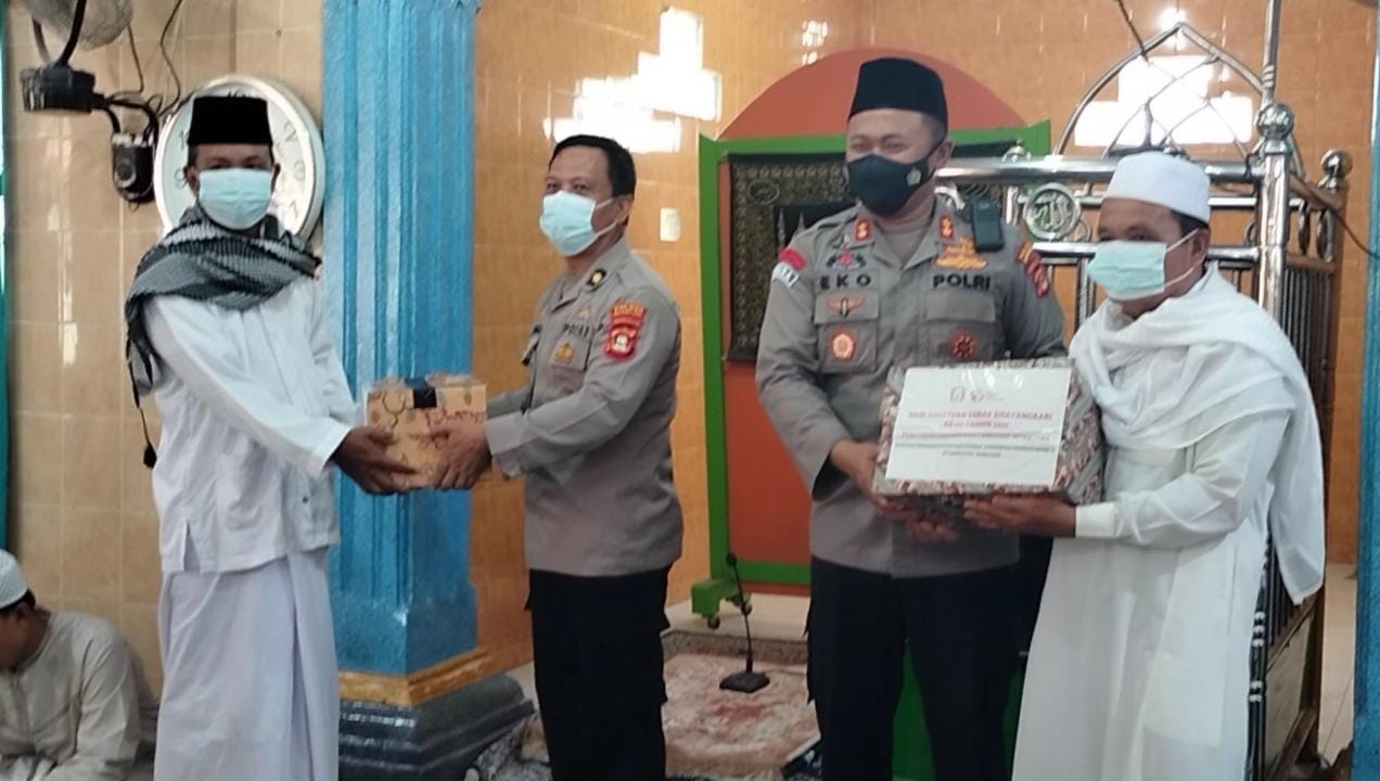 Berita Polres MURATARA – Kapolres Musi Rawas Utara (Muratara) Provinsi Sumatra Selatan , AKBP Eko Sumaryanto, S.ik melakukan Safari Jumat (15/10/2021) di Masjid Al-Muchsinin di Kampung Tangguh Bersih Narkoba di Desa Surulangun Kelurahan Surulangun, Kecamatan Rawas Ulu, Kabupaten Muratara. Usai melaksanakan sholat Jumat, Kapolres menyerahkan bantuan al-quran dan sembako kepada pengurus masjid. Saat penyerahan Kapolres didampingi Kasat Reskrim, AKP Dedi Rahmad Hidayat, Kasi Humas, AKP Rahmad Kusnedi dan anggota lainnya.