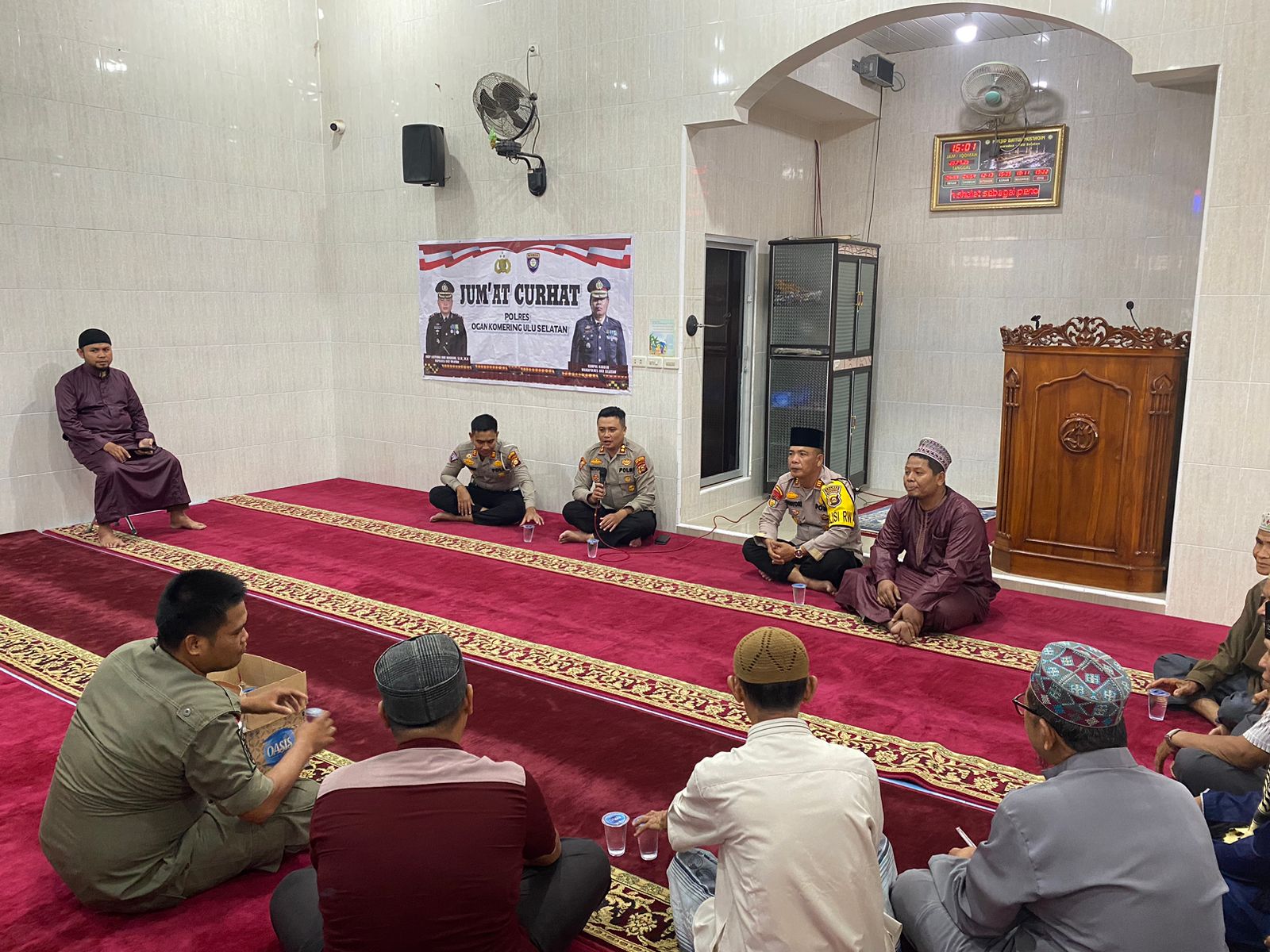 Baraknews OKUS, Kapolres OKU Selatan, AKBP Listiyono Dwi Nugroho, S.I.K., M.H., didampingi Kasat Lantas dan Kasat Binmas, beserta jajaran Polres OKU Selatan menggelar Jum’at Curhat bersama dengan jajaran Polres, di Masjid Baitul Mustaqim, Jum’at (4/8).