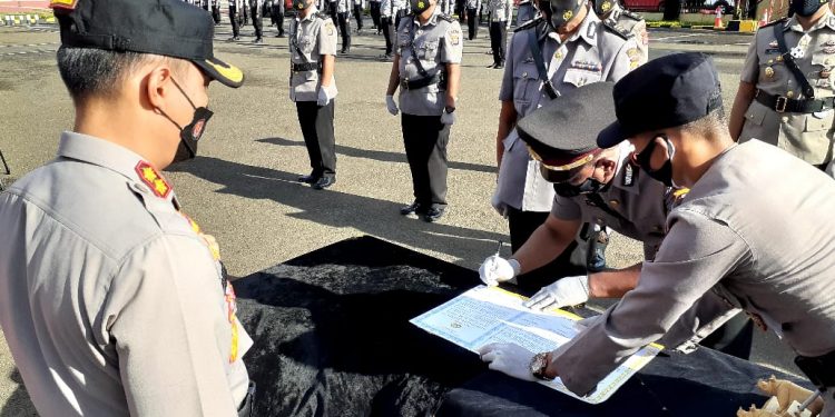 Berita MaPolres Pandelang– Kapolres Pandeglang AKBP Hamam Wahyudi memimpin upacara serah terima jabatan Kasat Reskrim, Kabag Ops dan dua Jabatan Kapolsek jajaran, di Halaman Mapolres Pandeglang, Kamis pagi (11/02/2021).