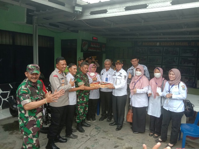 Baraknews Kodam Jaya, Tigaraksa – Tepat tanggal 5 Oktober 2022 Kapolsek Balaraja Kompol Yuda Hermawan, Camat Balaraja Yayat Rohiman dan Camat Sukamulya Yati Nurhayat mendatangi MaKoramil 05/Blj untuk memberikan surprise di HUT TNI Ke-77.