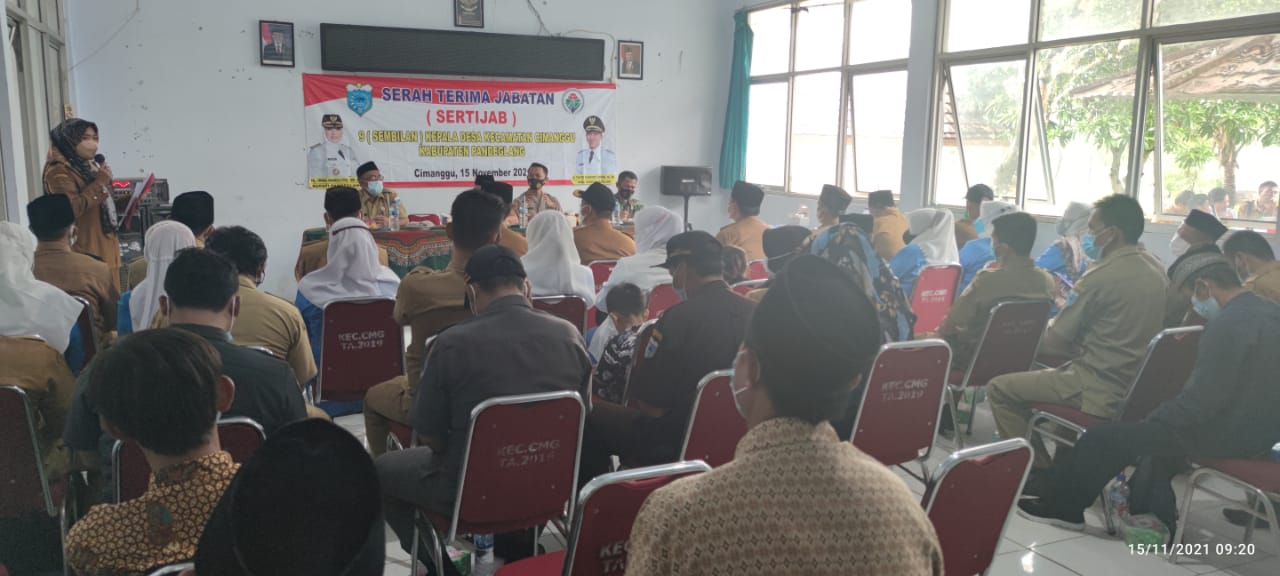 Pelaksanaan serah terima Sertijab di laksanakan di aula kecamatan Cimanggu pada hari ini Senin tgl 15 November 2021,serah terima di saksikan dan di hadiri langsung oleh HADI PATONI S.Sos (camat Cimanggu) iptu DARWIN KHAIRUL SYAFARI,S.Si. (Kapolsek Cimanggu) kapten inf Ajat Supendi (danramil Cimanggu)dan instansi terkait lainnya.