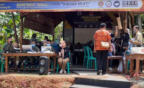 – Kapolsek Cisaga Polres Ciamis bersama unsur Muspika Kecamatan Cisaga melakukan monitoring percepatan vaksinasi bagi masyarakat di Desa Sidamulya