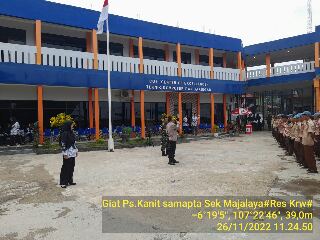 Baraknews Polres Karawang–Kapolsek Majalaya Kapolsek Majalaya Ipda Yulianto, SH memberikan penyuluhan tentang Bahaya narkoba dan larangan tawuran antar pelajar kepada Siswa dan Siswi SMK Teknologi di Desa.Lemah Mulya Kec.Majalaya Kab.Karawang.Sabtu (26/11/2022)