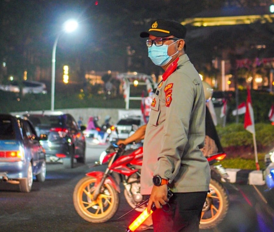 Kapolsek tak sungkan untuk turun tangan langsung mengatur arus kendaraan di bundaran Hotel Mercure demi mengantisipasi kemacetan dimalam minggu ini.