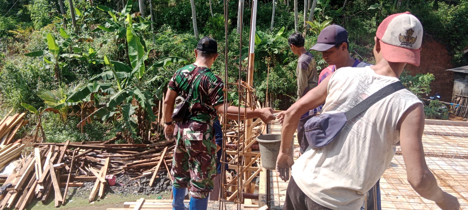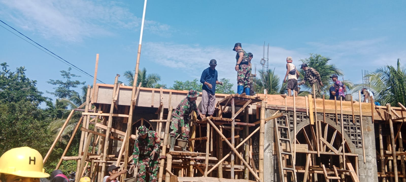 Kodim Pangandaran–Karyabakti Koramil 2505/Kalipucang kodim 0625/Pangandaran bersama-sama dengan warga masyarakat melaksanakan kegiatan pengecoran dak Mesjid Nurul Huda di Dusun Sindangsari RT 09 RW 13, Desa Banjarharja, Kecamatan Kalipucang, Kabupaten Pangandaran pada hari Kamis, 4 Januari 2024.