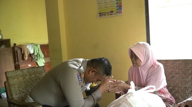 Dalam kunjungan tersebut Kasat Lantas memberikan bantuan berupa paket sembako untuk Ibu Otih.