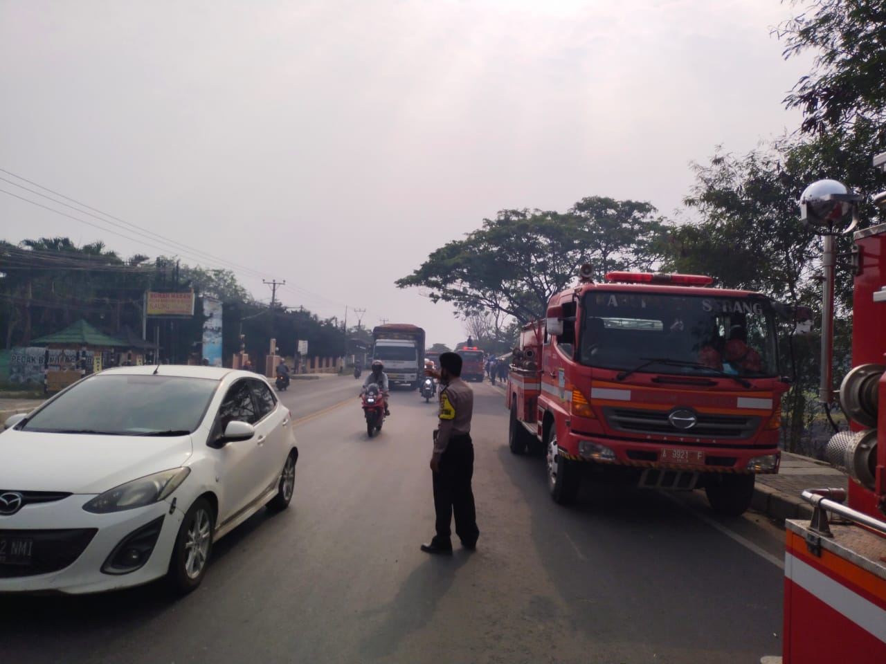 “Asap ngebul ke jalan raya membuat pengelihatan pengedaran terganggu. Api telah dipadamkan oleh mobil pemadam kebakadan sebayak lim mobil dari damkar Kota Serang,” ungkapnya.