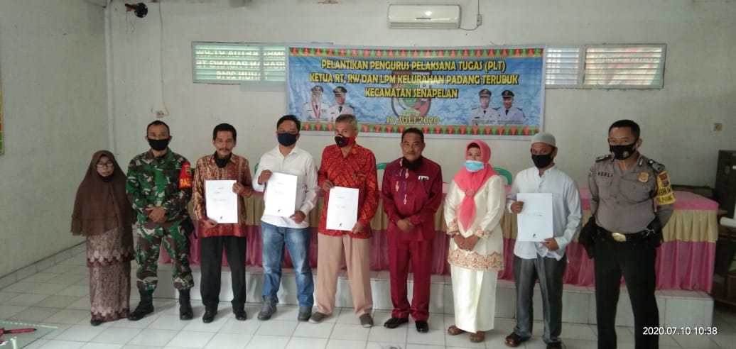 Berita Pekanbaru, — Sebagaimana yang kita ketahui, bahwa akan mengingat fungsi dan peran kinerja Ketua LPM dan RT/RW adalah salah satu sebagai bagian pelayanan dan penyampaian suara yang dapat menjembatani aspirasi masyarakat untuk bersama-sama dan saling bahu-membahu dalam membantu mengsukseskan program kinerja pemerintah kelurahan di kecamatan kita tentunya, Kecamatan Senapelan Kelurahan Padang Terubuk, Raymon Akmaluddin Saragih SH. Sebagai Lurah Padang Terubuk melantik beberapa pengurus Pelaksana tugas (Plt) Ketua LPM beserta Ketua RT/ RW Kelurahan Padang Terubuk, Pada hari Jum’at, (10/7/2020), di Aula Kantor Kelurahan Padang Terubuk.