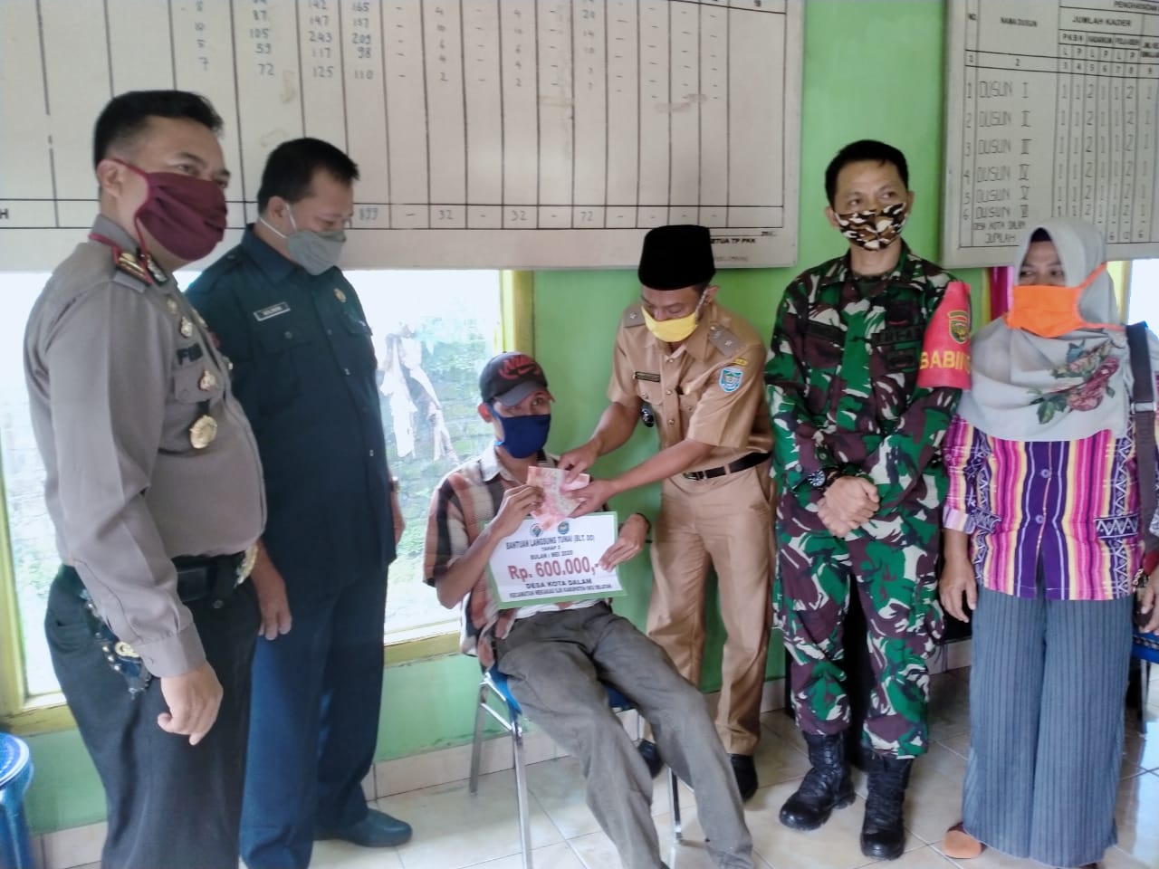 Pembagian BLT yang bersumber dari Dana Desa disaksikan Bhabinkamtibmas, Babin,Sekcam dan perangkat Desa,Pendamping. Kepala Desa Kota Dalam juga menjelaskan bahwa penyaluran Bantuan Langsung Tunai BLT Dampak Covid 19 ini disalurkan secara langsung kepada penerima BLT Dana Desa Sebanyak 30 Kepala Keluarga (KK).