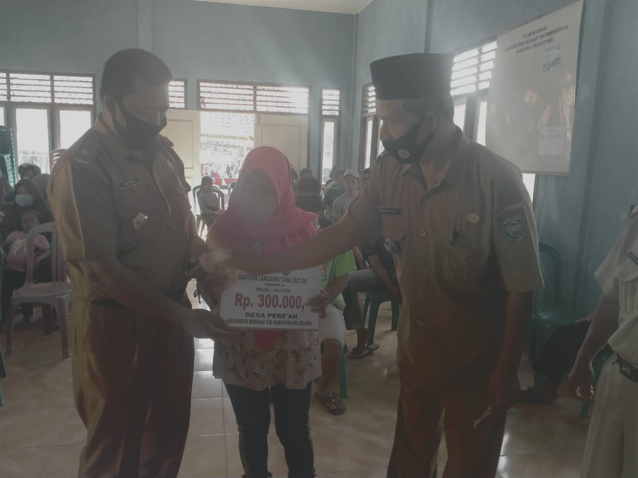 Pembagian dana BLT langsung diserahkan oleh Kepala Desa kepada penerima dana BLT dibalai Desa Perean Kecamatan Mekakau Ilir Kabupaten OKU Selatan.