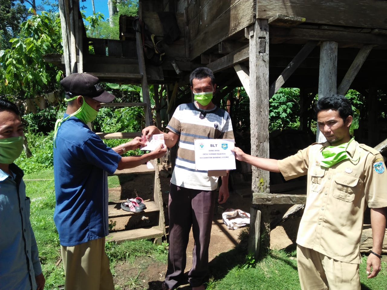 Kepala Desa Sumber Makmur didamping Perangkat Desanya,pihak Kepolisian,TNI yang langsung menyalurkan Bantuan Semboko beras kepada warga Desa Sumber Makmur sebanyak 72 kk yang berhak mendapat bantu beras Dan Dan 75 Kepala Keluarga Mendapatkan bantuan Dana BLT senilai 600 (ribu rupiah). yang mana sebelumnya sudah didata terlebih dahulu oleh kadus masing masing pembagian dana BLT kami memberikan bagi warga Desa yang benar benar membutuhkan nya.