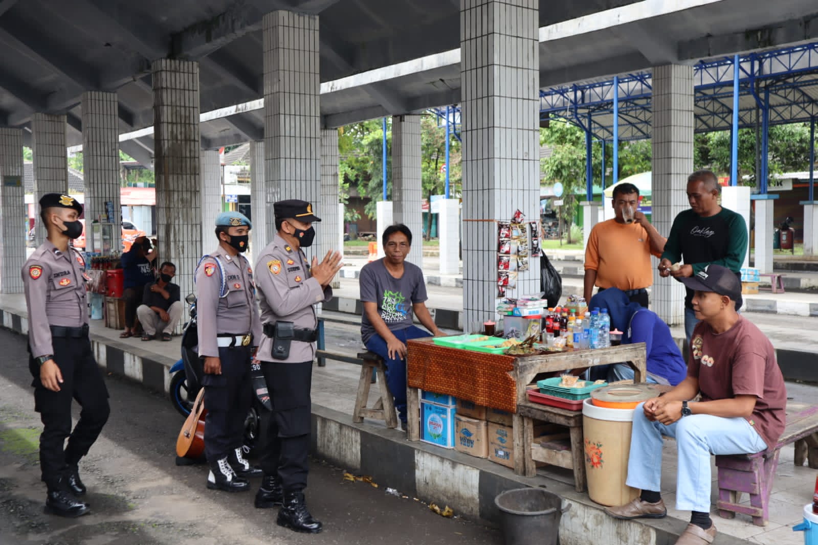 Baraknews Ciamis – Kepolisian Resor Ciamis Polda Jabar melaksanakan pemantauan kegiatan masyarakat di kawasan Pasar dan Terminal Ciamis, Kabupaten Ciamis, Jawa Barat, Sabtu (12/02/2022).