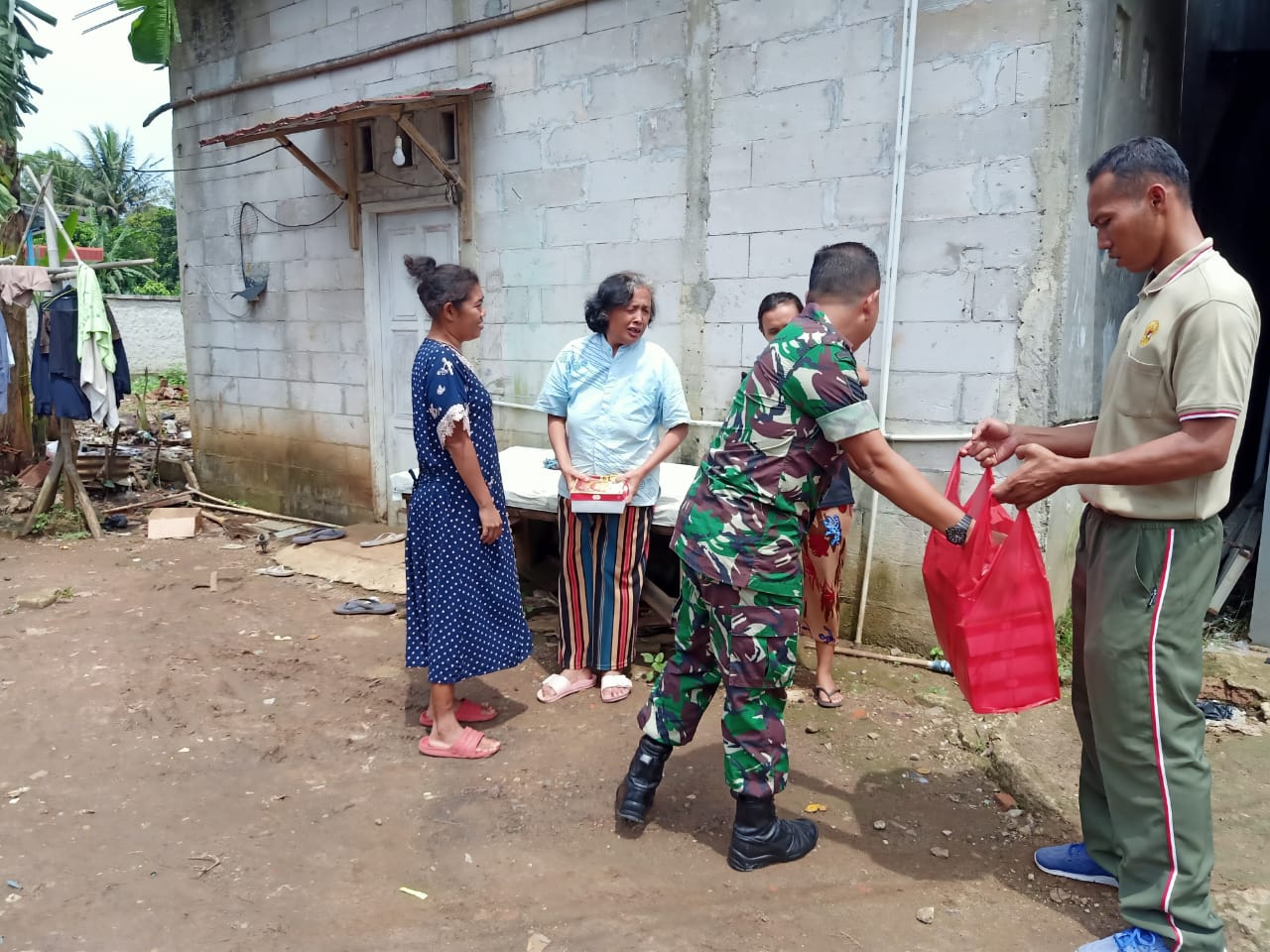 Pembagian nasi bungkus di bagikan langsung oleh personil Kodim 0510/Tigaraksa Serka Nurwahyudi, Sertu Naryo dan Serda Eko yang di berikan langsung kepada warga.