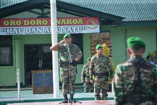 Dandim 1710/Mimika, Letkol Inf Dedy Dwi Cahyadi hadir memimpin upacara tersebut sebagai Inspektur Upacara sedangkan Komandan Upacara dijabat oleh Danunit Intel, Letda Inf Ahmad Saleh dan Perwira Upacara dijabat oleh Pasandi, Letda Inf A.A. Rumayom. Kegiatan upacara diawali dengan menyanyikan lagu Mars Eka Paksi Jaya dilanjutkan dengan pengucapan Sapta Marga oleh Serka Idrus.