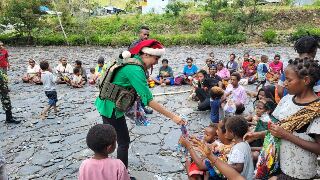 Kodim 1714/Puncak Jaya Bagikan 250 Bingkisan Natal Untuk Anak-Anak