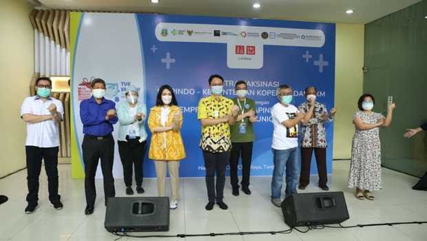 Tidak hanya pemerintah, dunia usaha salah satunya perusahaan ritel global asal Jepang dengan brand UNIQLO juga turut memberikan dukungan terhadap sentra vaksinasi yang digelar oleh Kementerian koperasi dan UKM serta Hippindo yang bekerja sama dengan Pemprov Banten dan Apindo tersebut.