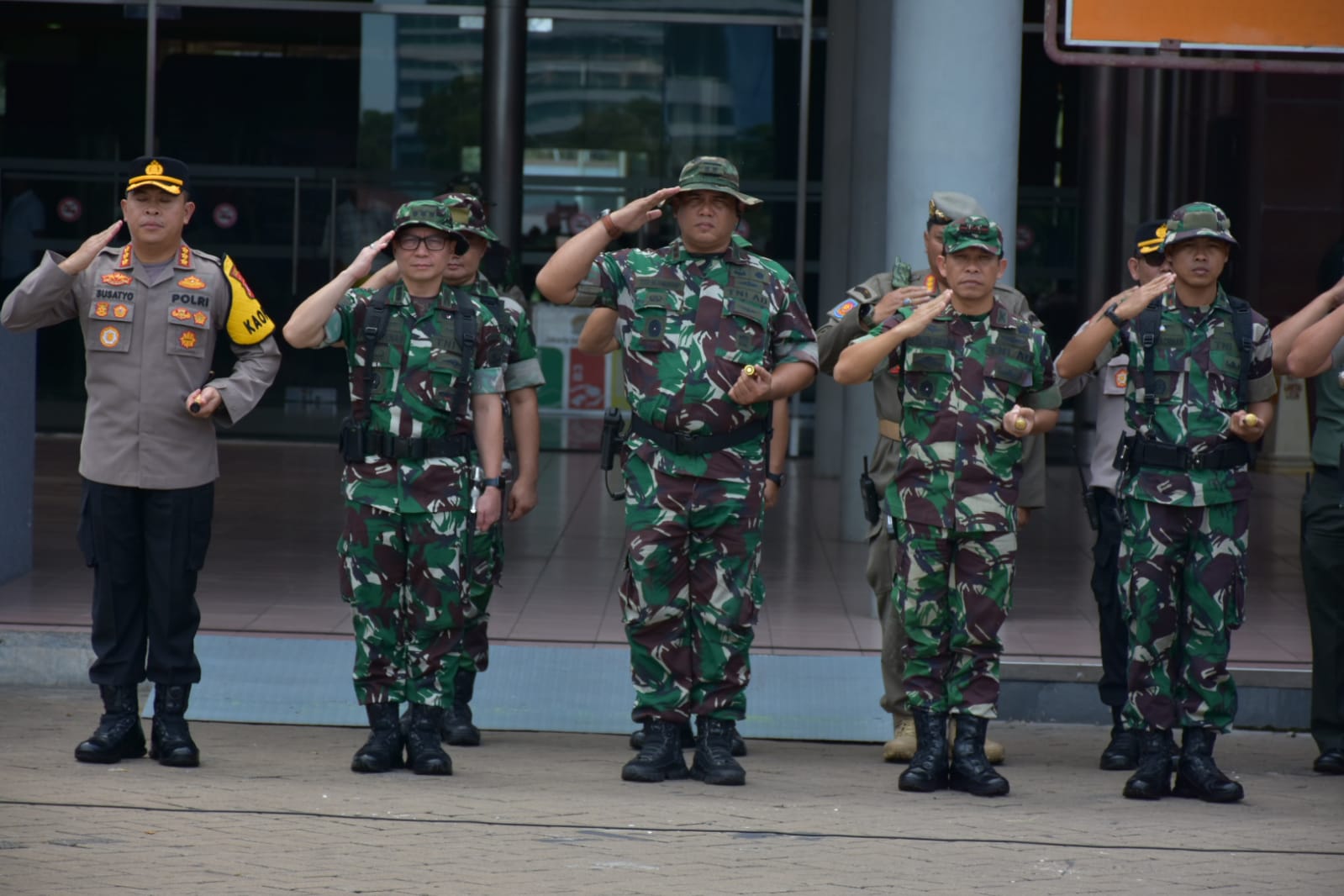Jakarta Pusat–Dalam rangka menjaga kondusifitas wilayah DKI Jakarta dan mewujudkan penyelenggaraan pemilu 2024 berjalan lancar dan sukses, Dandim 0501/JP Letkol Inf Bangun I.E. Siregar, S.H., MIPOL. bersama Kapolres Metro Jakarta Pusat Kombes Pol Susatyo Purnomo Condro mengecek langsung kegiatan latihan terintegrasi penyaiapan pengamanan pemilu tahun 2024 di wilayah Jakarta Pusat bertempat di Jl. H. Benyamin Suaeb, Kec. Kemayoran, Jakarta Pusat. Kamis, (18/1/2024)