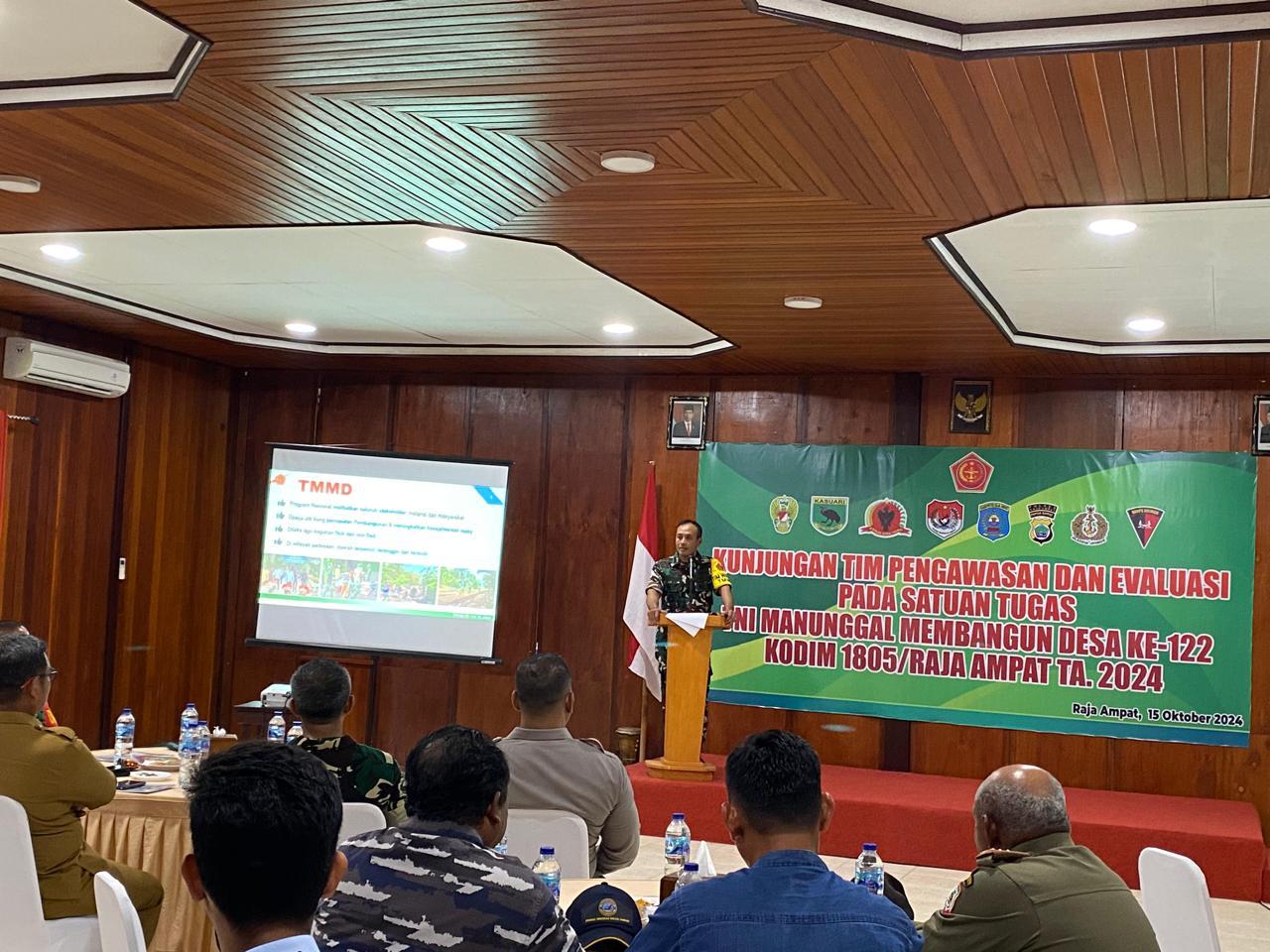 Raja Ampat – Tim Wasev yang dipimpin Kolonel Inf Purnomosidi S.IP.,Han memantau secara langsung setiap pelaksanaan TMMD ke-122, baik kegiatan fisik maupun non fisik. Dalam kegiatan tersebut juga dilakukan pembagian 100 paket sembako untuk masyarakat Kampung Saporkren. Kolonel Inf Purnomosidi mengatatan Kampung Saporkren menjadi sasaran TMMD sudah tepat, karena fasilitas umum untuk masyarakat belum memadai. “Mudah-mudahan ini terus berlanjut di kepulauan lain yang sangat membutuhkan bantuan dalam rangka meningkatkan kesejahteraan masyarakat,” katanya, Selasa (15/10/2024).