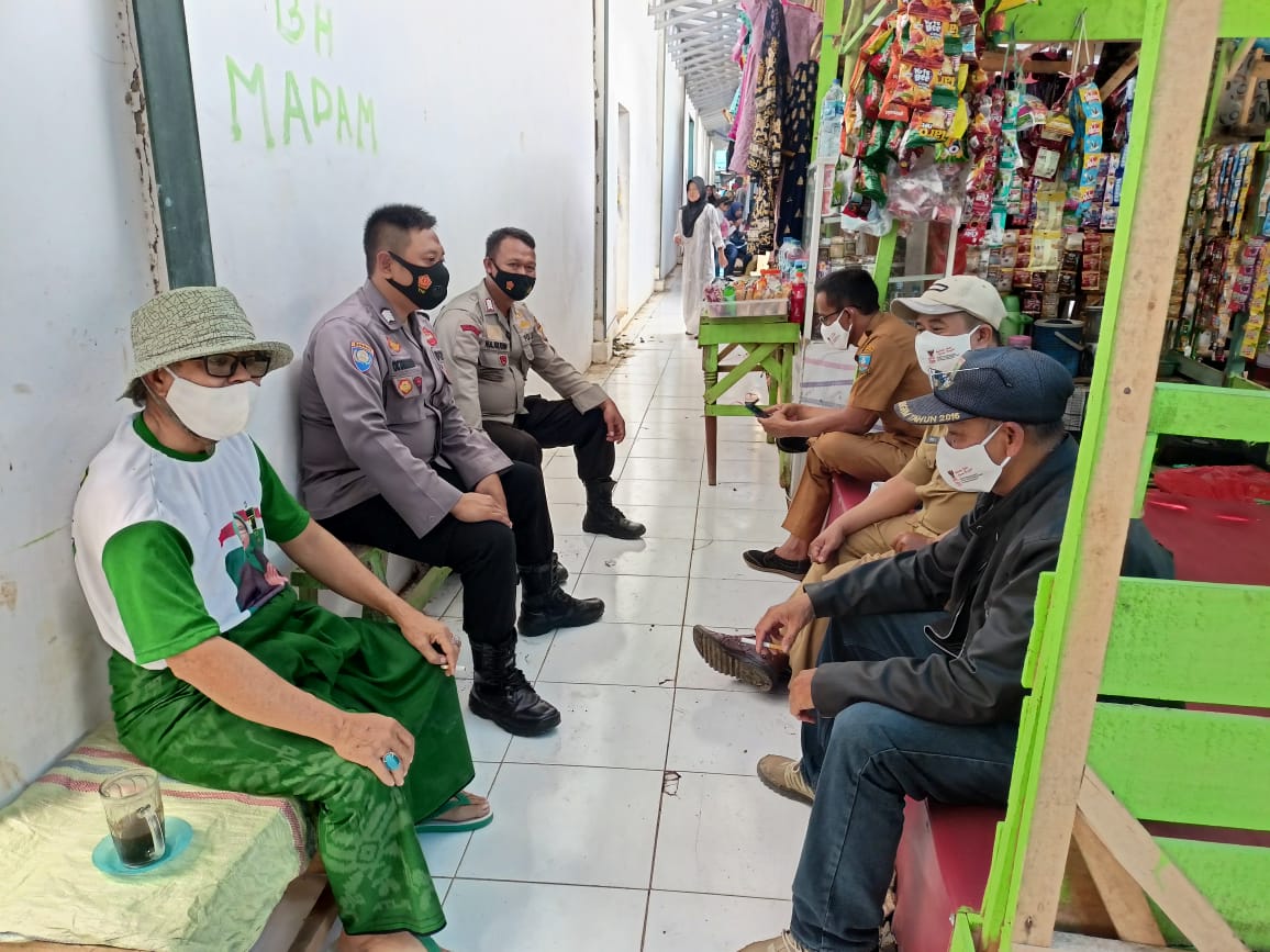 Kunjungi pengelola pasar Kanit Binmas Polsek Padarincang Polres Serang Kota Himbau Prokes