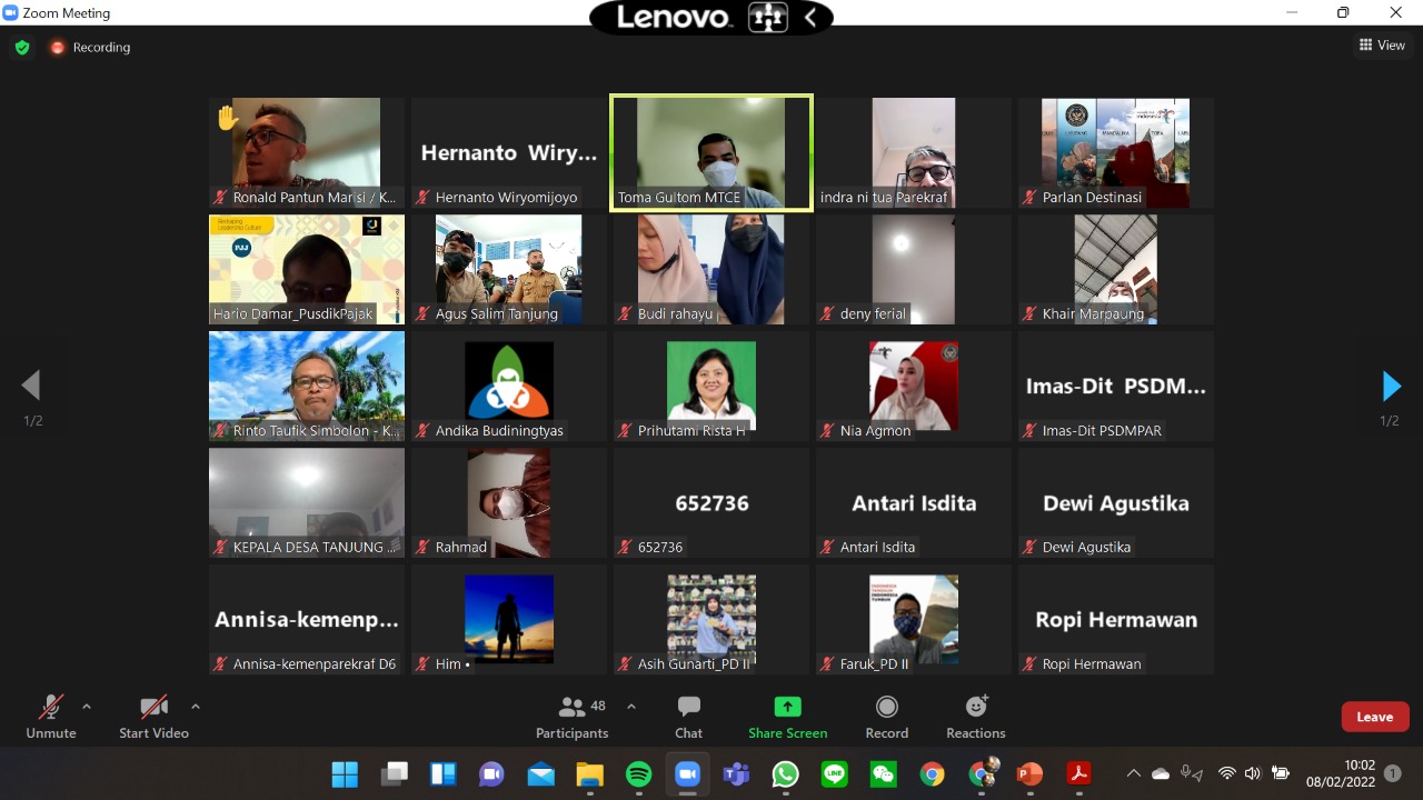 Baraknews Kota Bekasi-kementerian pariwisata dan ekonomi kreatif badan pariwisata dan ekonomi kreatif pada bidang deputi pengembangan destinasi dan infrastruktur adakan diskusi Bersama Aliansi Masyarakat Lingkungan Hidup dan B3 Indonesia (AMPHIBI) melalui Zoom Meet. pada selasa, (08/02/2022)