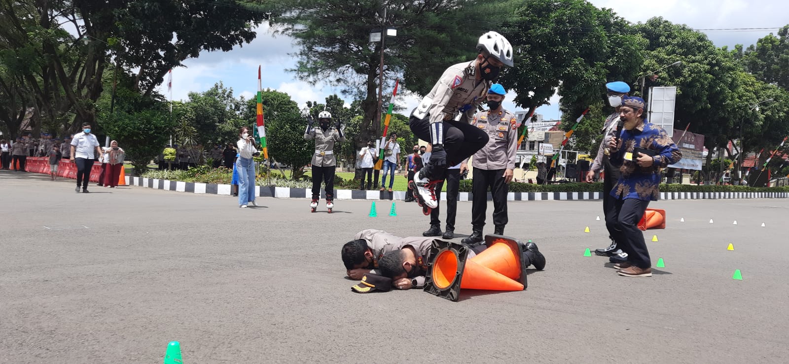 Diakhir acara, personel Polres Serang Kota menunjukkan beberapa kemampuan, salah satunya dari Satlantas Polres Serang Kota menunjukkan kemampuan menggunakan sepatu roda yang akan diaplikasikan dalam pengaturan lalu lintas.