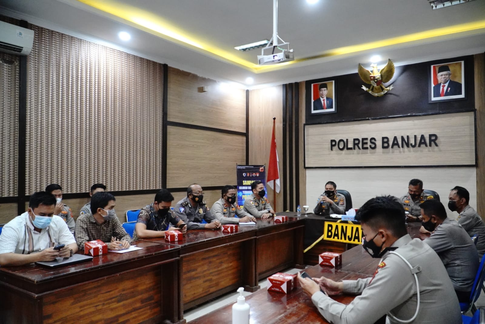 Tim sosialisasi dari Polda Jabar tersebut dipimpin oleh IRBID ITWASDA Polda Jabar AKBP Dedy Dewantho, S.I.K., beserta Personel Irwasda Polda Jabar lainnya, diterima langsung oleh Kapolres Banjar AKBP Ardiyaningsih, S.I.K.,M.Si. melalui Wakapolres Banjar Kompol Lalu Wira Sutriana K., Amd. dengan dihadiri oleh Kasat Intel, Kasiwas Polres Banjar, Kasubsi Humas, Kanit Reg Ident, Kanit Laka Sat Lantas Polres Banjar, Kaur min Sat Narkoba, Ka SPKT, Personel Yanmin Intel Polres Banjar.