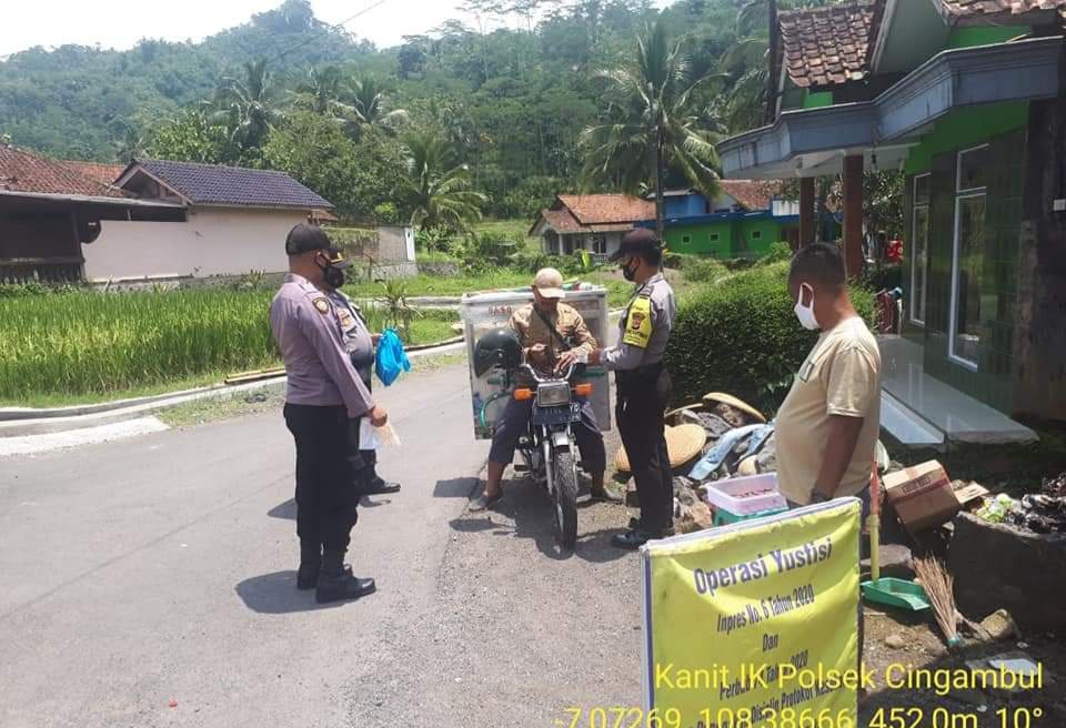 Berita Polres Majalengka – Kapolsek Cingambul Polres Majalengka AKP Udin Saefudin memimpin pelaksanaan kegiatan Operasi Yustisi dengan cara berikan himbauan, teguran hingga sanksi fisik sekaligus membagikan masker.