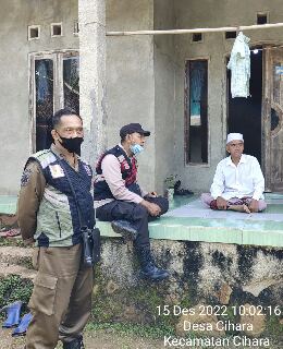“Pada pelaksanaan kegiatan tersebut Kanit Binmas didampingi oleh Mayudi Anggota Sat Pol. PP. Kecamatan Cihara dan tokoh Agama yang dikunjungi Ky. Sar’an.