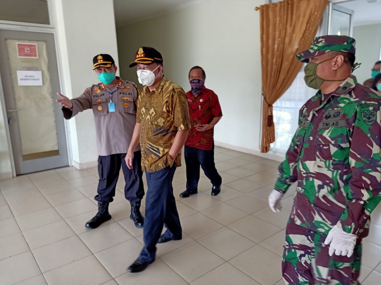 Dalam penyerahan bantuan APD, Kapolres Banjar didampingi Kepala Kepala Kejaksaan Negeri Banjar, Gunadi, SH., M.H., Pabung Banjar Kodim 0613/Ciamis, Mayor Czi Budi Arianto, Kepala Inspektorat Kota Banjar dan Penanggung Jawa Lokasi Karantina. Pungkasnya.(Irwan)