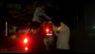 Kemudian petugas patroli segera menolong dengan mengangkut motor tersebut naik keatas mobil patroli untuk dibawa ke SPBU terdekat.