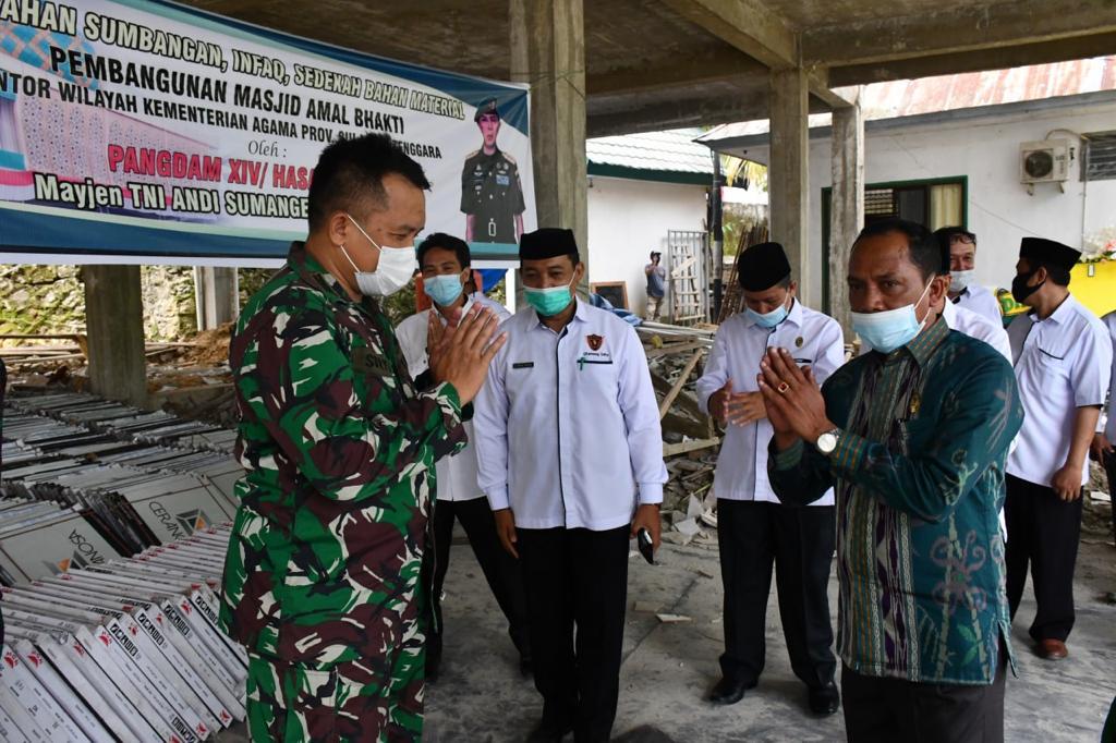 Berita Kendari, – Selain mengucapkan terima kasih, saat menerima bantuan pembangunan Masjid Amal Bhakti , Kabag TU Kemenag Prov Sultra Drs. H. Muh Basri, M.Pd mendoakan semoga setiap langkah Pangdam XIV/ Hasanuddin Mayjen TNI Andi Sumangerukka selalu mendapatkan limpahan karunia Allah SWT.