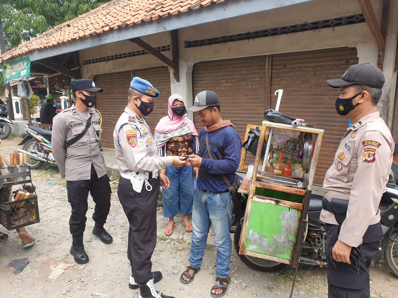 Sebanyak 10 personel gabungan baik dari Polsek, Koramil, Satpol PP maupun Perangkat Desa diterjunkan untuk memberikan masker gratis kepada warga. Pemberian masker ini dilaksanakan dalam kegiatan operasi yustisi penegakan disiplin protokol kesehatan yang dipimpin langsung oleh Kapolsek Rajagaluh AKP Sarjiyo.