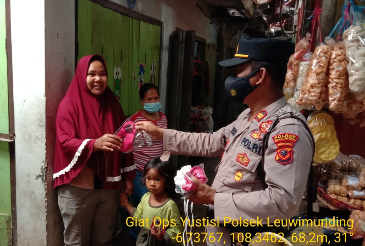 Pihaknya juga rutin melaksanakan Ops Yustisi dengan pembagian masker kepada masyarakat di wilayah hukum Polsek Leuwimunding, Pembagian masker menyasar pusat aktivitas masyarakat seperti pasar karena rentan terjadi penyebaran Covid-19.