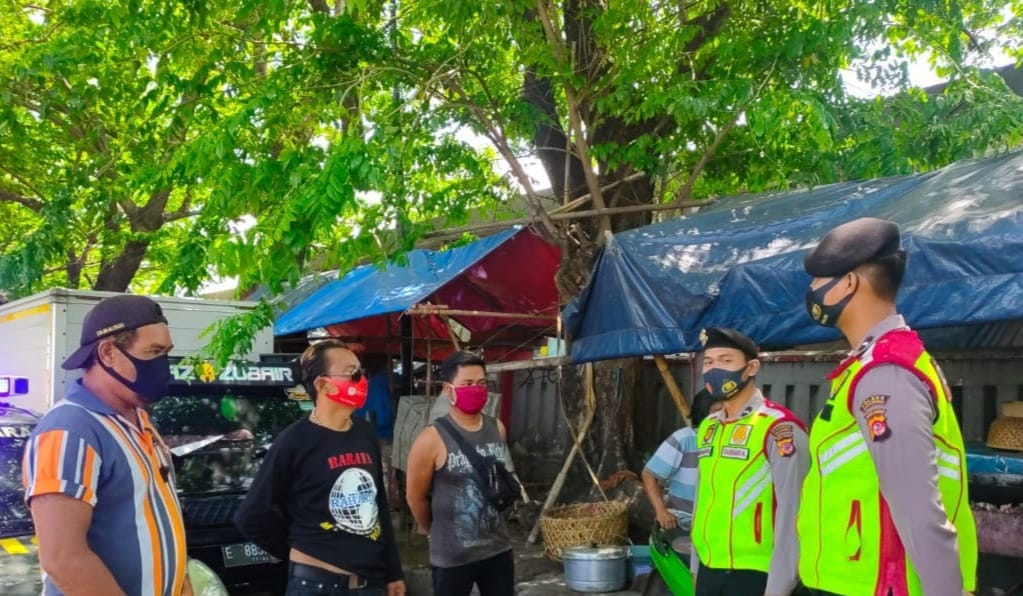Dalam kesempatan tersebut petugas patroli menyampaikan himbauan tukang parkir agar selalu waspada terhadap curanmor dan beberapa warung adar selalu menerapkan Prokes Kesehatan.