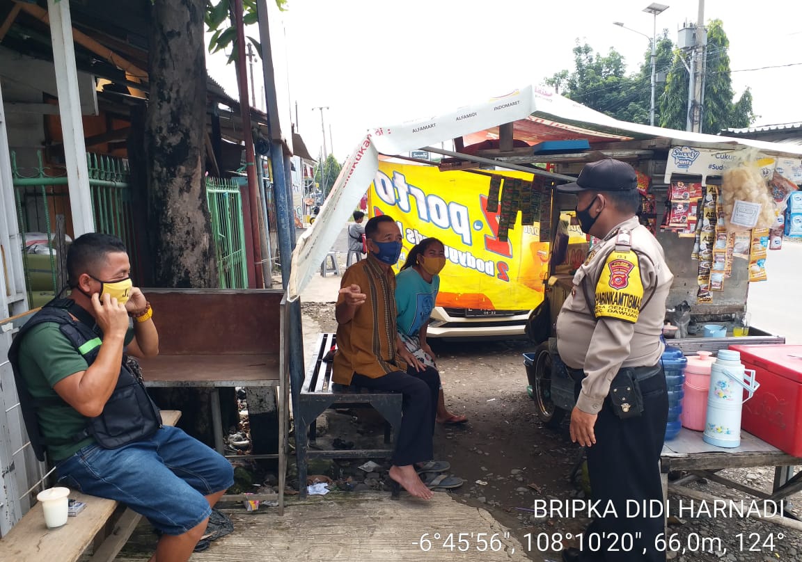 Berita MaPolres Majalengka,– Bhabinkamtibmas Polsek Dawuan Polres Majalengka, Jajaran Bhabinkamtibmas melaksanakan patroli rutin sekaligus memberikan himbauan Kamtibmas (Keamanan dan Ketertiban Masayarakat) dan Protokol Kesehatan kepada masyarakat yang beraktifitas di Desa Binaannya Wilayah Kecamatan Dawuan Kabupaten Majalengka. Rabu (27/1/2021).