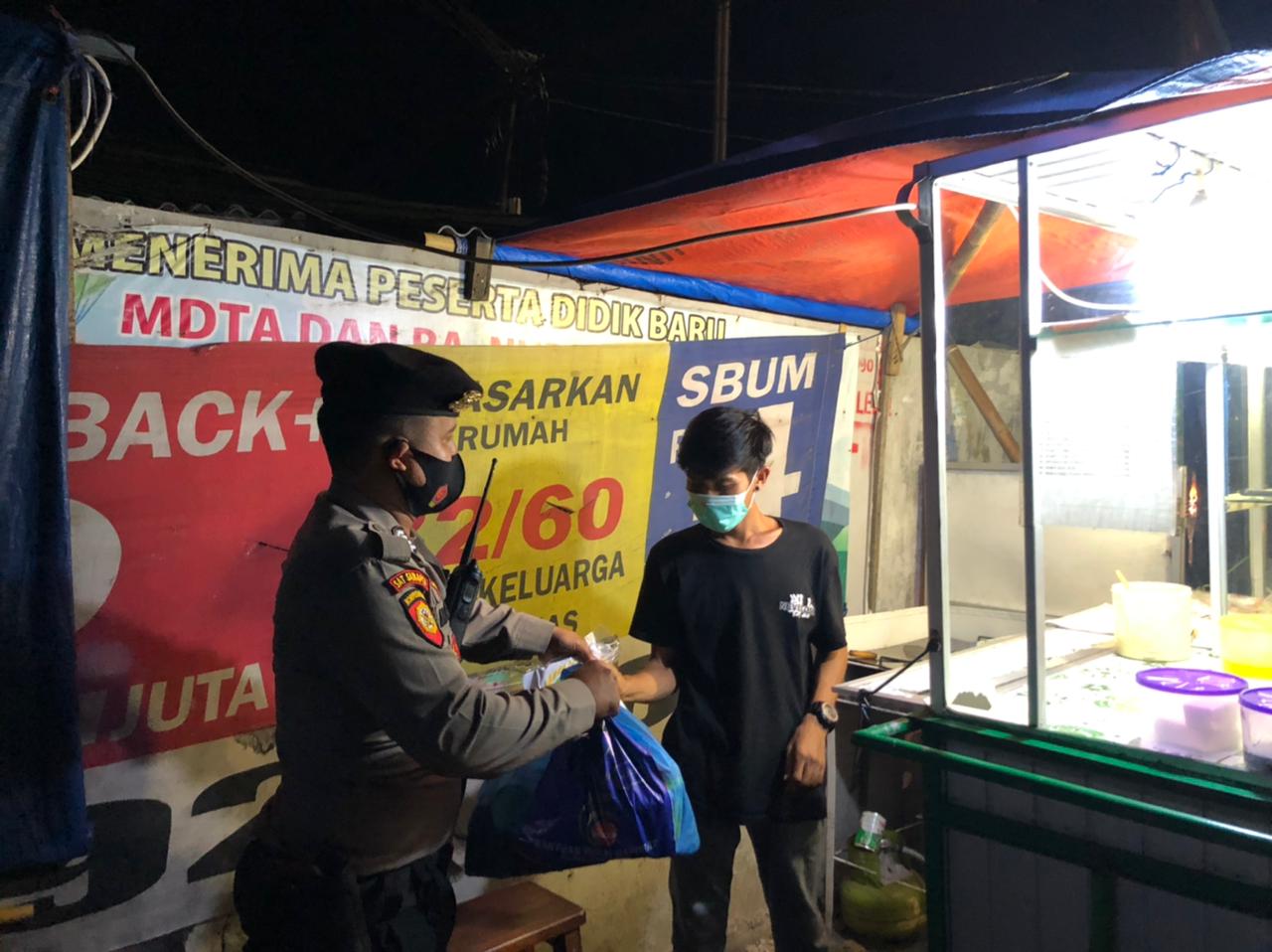 Dalam kesempatan tersebut, petugas membagikan paket sembako kepada pedagang UMKM dan masyarakat yang kurang mampu yang terdampak covid-19.