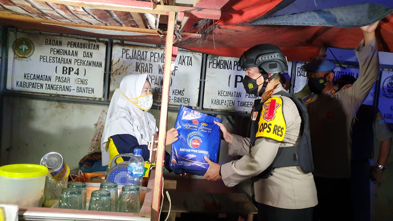 “Kami imbau agar masyarakat menutup kegiatan dagang karena sudah lewat jam 20.00 WIB. Dan kami juga memberikan bantuan sembako berupa paket beras kepada pedagang asongan dan kaki lima yang terdampak Covid-19 di sepanjang Jalan Raya Pasar Kemis – Jatiuwung,” kata Wahyu.