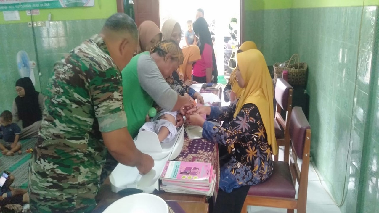 Peduli Kesehatan Anak, Babinsa Koramil Sutojayan Dampingi Kegiatan Posyandu Balita Dan Pengecekan Kesehatan Anak Penderita Stunting