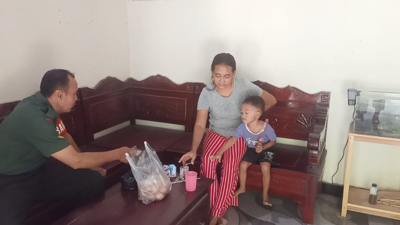 Kodim Blitar – Babinsa Koramil 0808/22 Wonodadi Kodim 0808/Blitar Serda Slamet, melaksanakan kegiatan monitoring dan memberikan bantuan gizi tambahan, kepada anak penderita stunting atas nama Arfan Gabril Alfaro umur 3 tahun 7 bulan, kegiatan ini, dilaksanakan bertempat di Dusun Kaliboto RT. 03 RW. 01 Desa Kaliboto Kec. Wonodadi Kab. Blitar, Kamis (30/11/2023).