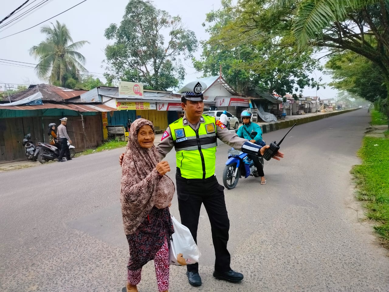 Lanjut Kasat Lantas mengatakan, disamping melaksanakan Gatur (kegiatan penjagaan dan pengaturan) juga membantu pejalan kaki menyeberang jalan sebagai bentuk pelayanan prima dan kepedulian keselamatan kepada masyarakat guna menciptkan keamanan, keselamatan, ketertiban dan kelancaran lalu lintas (Kamseltibcarlantas), ujar Azmi.