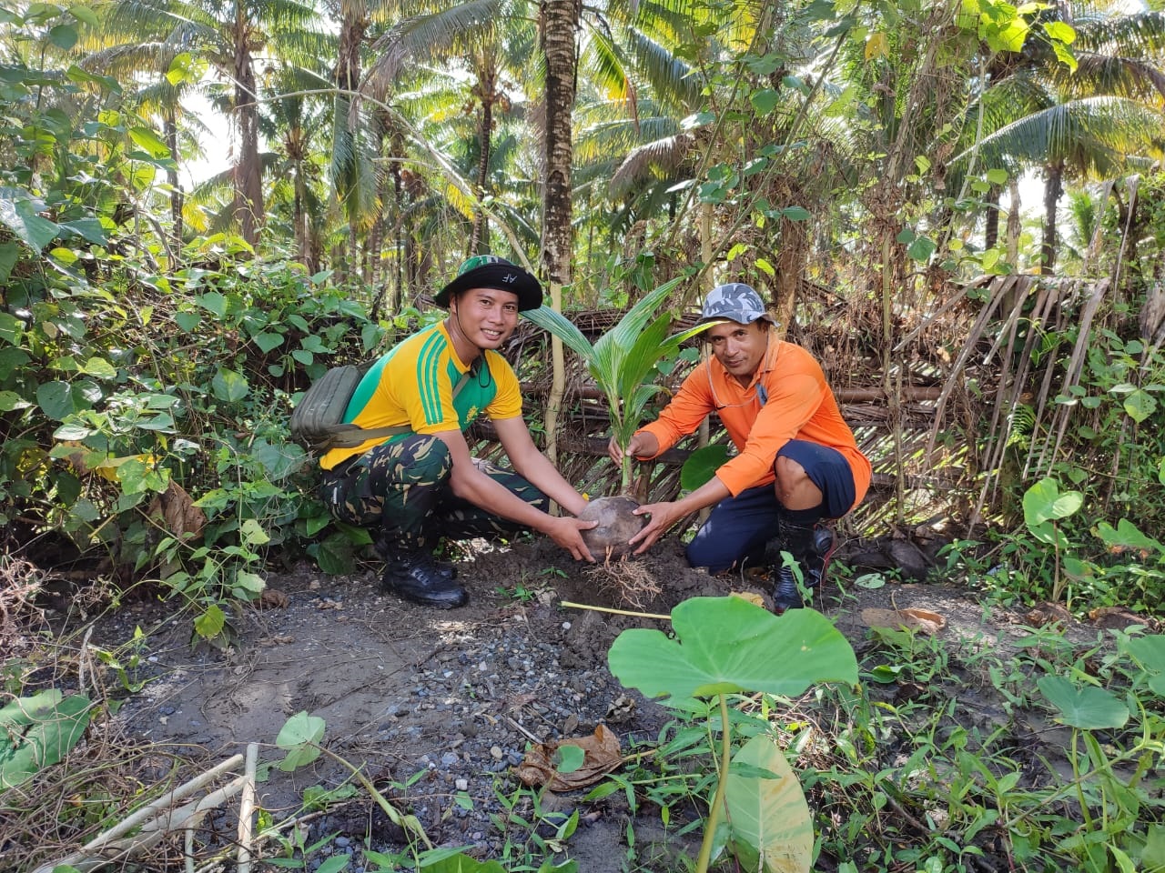 Baraknews Ambon–Kepedulian terhadap lingkungan ditunjukkan Pos Ramil Lokki yang tergabung dalam Satgas Kodim Maluku Yonarmed 1 Kostrad dengan melakukan penanaman 100 pohon kelapa dan pala di pesisir Pantai Lokki, Desa Lokki, Kec. Huamual, Kab. Seram Bagian Barat, Jumat (9/9/2022). Demikian disampaikan Dansatgas Yonarmed 1 Kostrad Letkol Arm Arief Budiman, S.Sos., M.M., dalam keterangan tertulisnya.