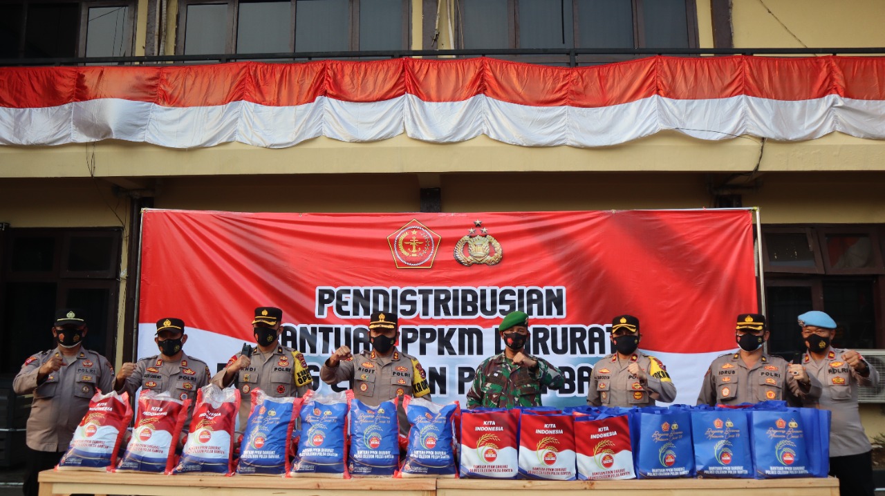 Berita Polres Cilegon – Polres Cilegon Polda Banten dan Kodim 0623 Cilegon bersinergi melaksanakan kegiatan Pendistribusian Bantuan PPKM Darurat di halaman Mapolres Cilegon.jum’at,(16-7-2021)