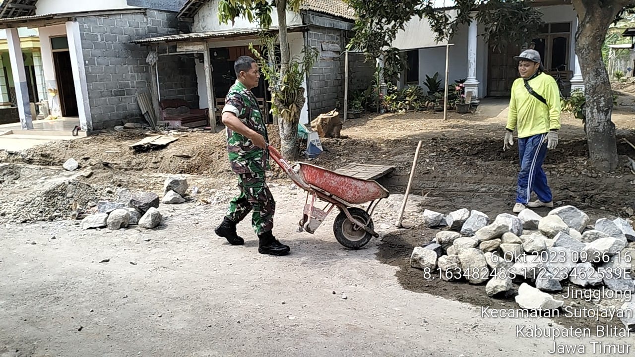Peduli Pembangunan Di Desa Binaannya, Babinsa Koramil Sutojayan Gelar Gotong Royong Bersama