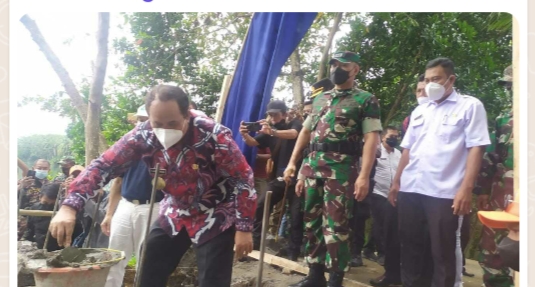 Baraknews Pangandaran–Bupati Pangandaran, H. Jeje Wiradinata dan Komandan Kodim 0613/Ciamis Letkol Inf Wahyu Alfiyan Arisandi, S.I.P., M.I.Pol. melakukan peletakan batu pertama pembangunan Jembatan Gantung bertempat di Dusun Mandala RT. 20 RW. 09 Desa Batukaras Kecamatan Cijulang Kabupaten Pangandaran, Jawa Barat, Rabu (09/03/2022).
